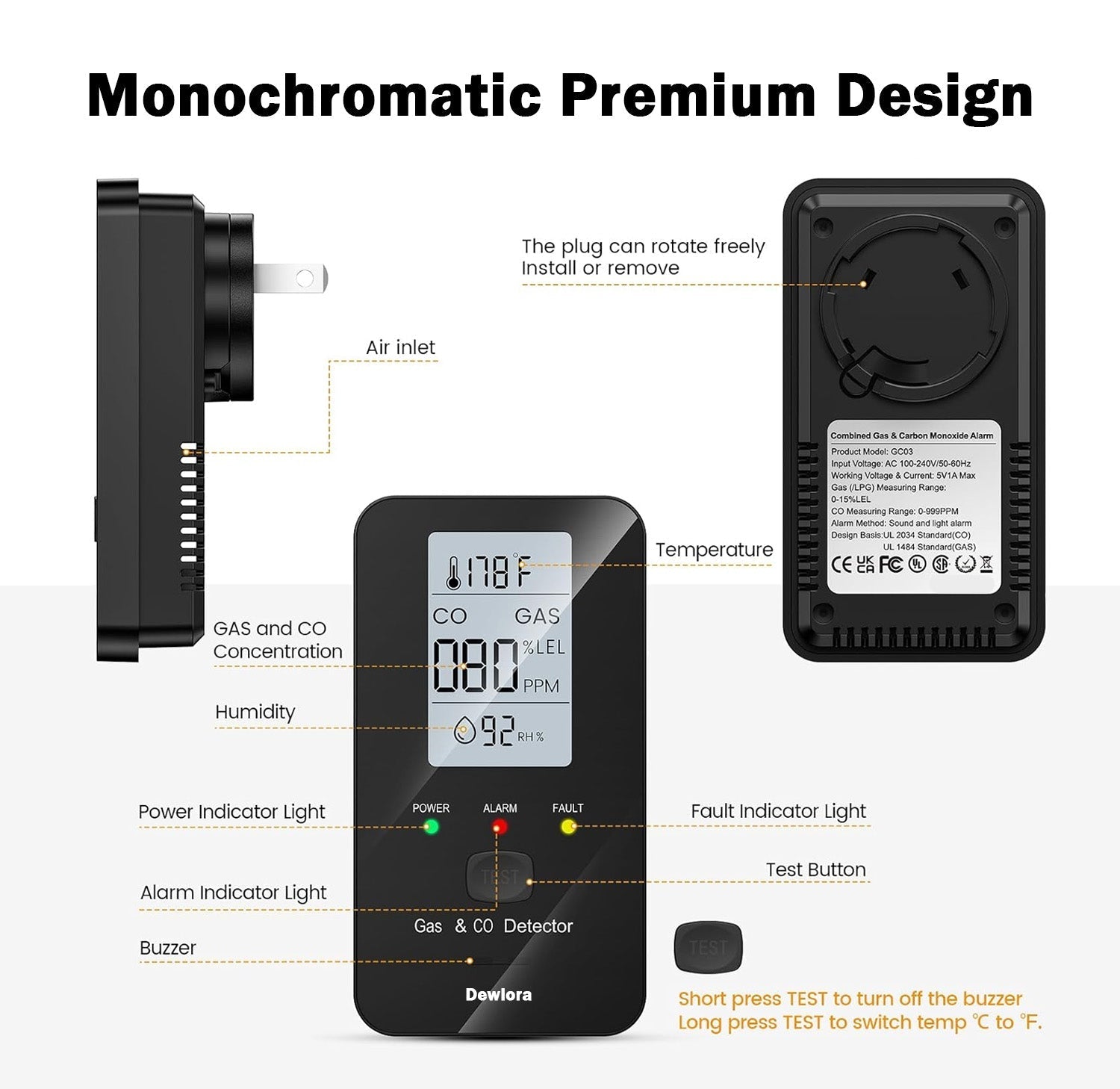 CO, gas, propane, temp & humidity in one plug-in device.