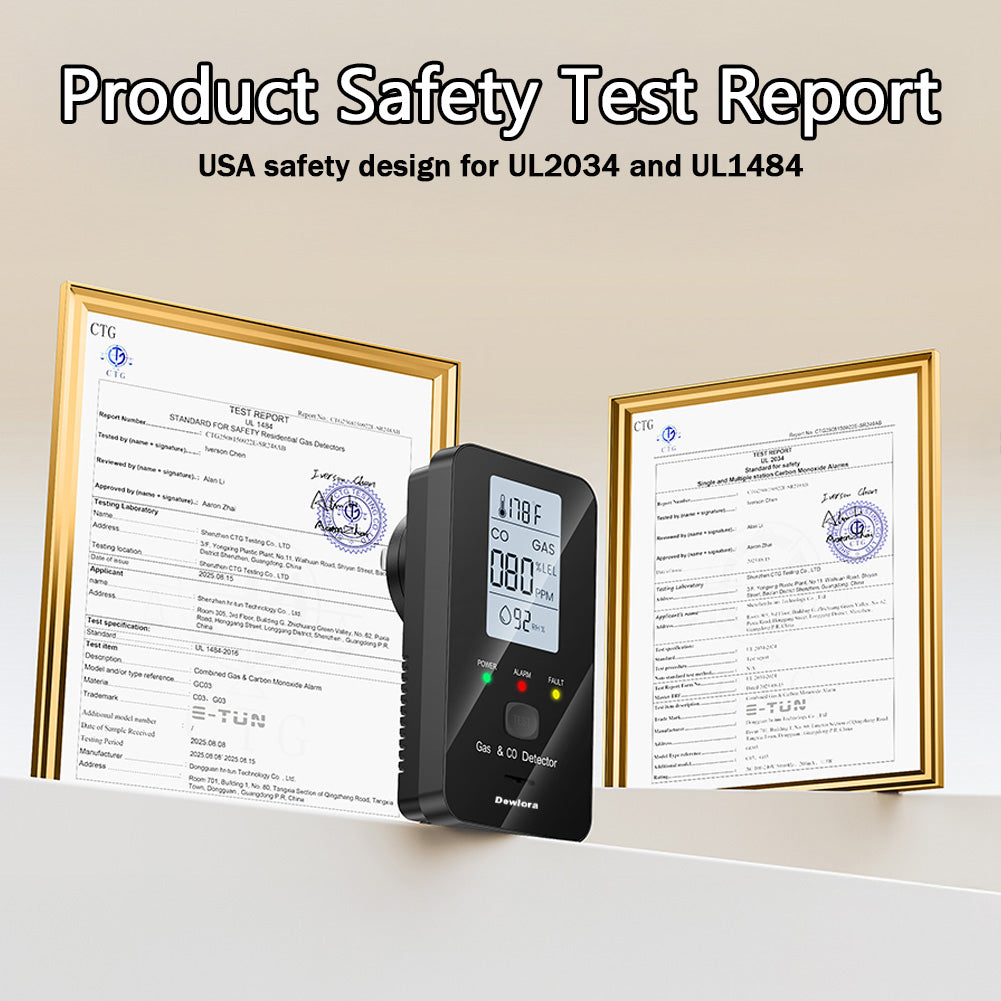 - ✓4-in-1 — CO, gas, propane, temp & humidity
